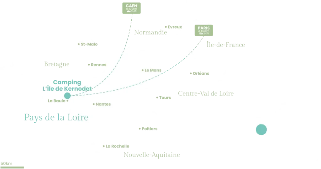 À seulement quelques kilomètres de notre camping à Saint-Molf (44), profitez de l’effervescence de La Baule, découvrez les marais salants où profiter du calme du parc de la Brière. À vous d’écrire jour après jour le ton de vos vacances en famille. Les idées de sorties et d’activités à faire autour de notre Camping Paradis l’île de Kernodet ne manquent pas !